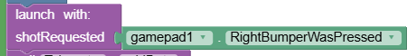 First, I want to point out that the method name is launch, and the input parameter to the method is shotRequested. In the Teleop Code you can see that the edge-detected value of the Gamepad 1 Right Bumper is used as a true/false input to the launch method in order to start the launch sequence.